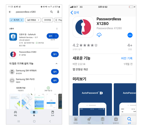 Store에서 [Passwordless X1280 v1]로 검색하여 다운로드 받을 수 있습니다