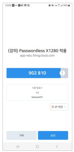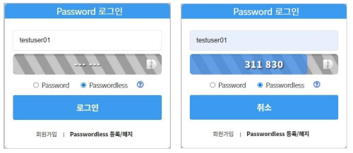 Passwordless X1280 v1 서버로 로그인 요청이 정상적으로 전달되면 서비스 패스워드, 유효