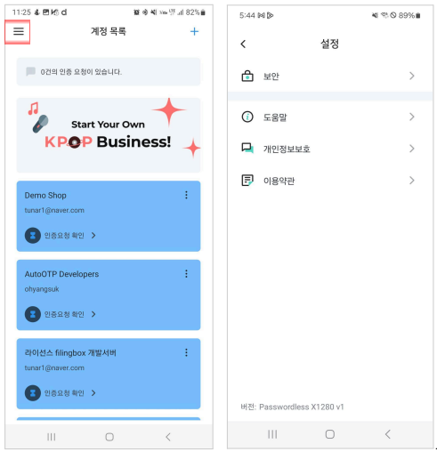 PLX1280 APP에서 인증요청에 대한 승인 및 거절