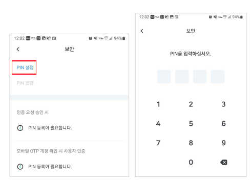 요청할 수 있도록 합니다. 해당 기능을 사용하기 위해서는 우선 PIN 코드를 설정해야